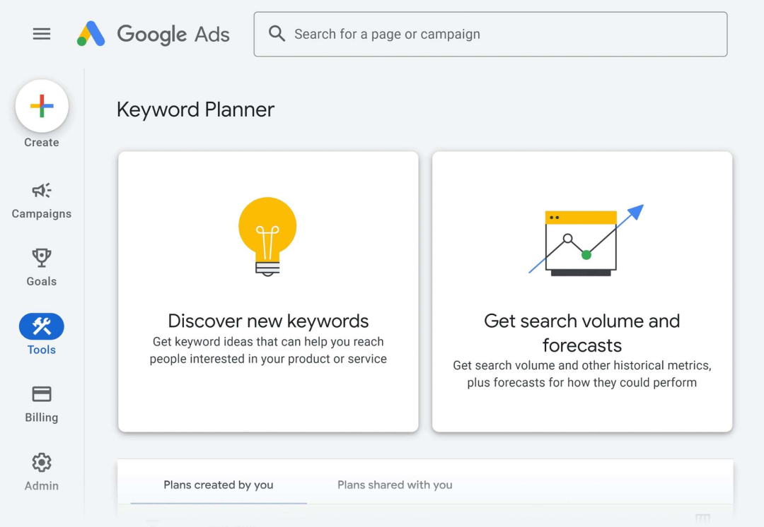 首先,你需要登錄Google Ads賬戶,進入“工具”板塊,點擊“關鍵字規劃師”,隨后選擇“發現新關鍵字”功能。